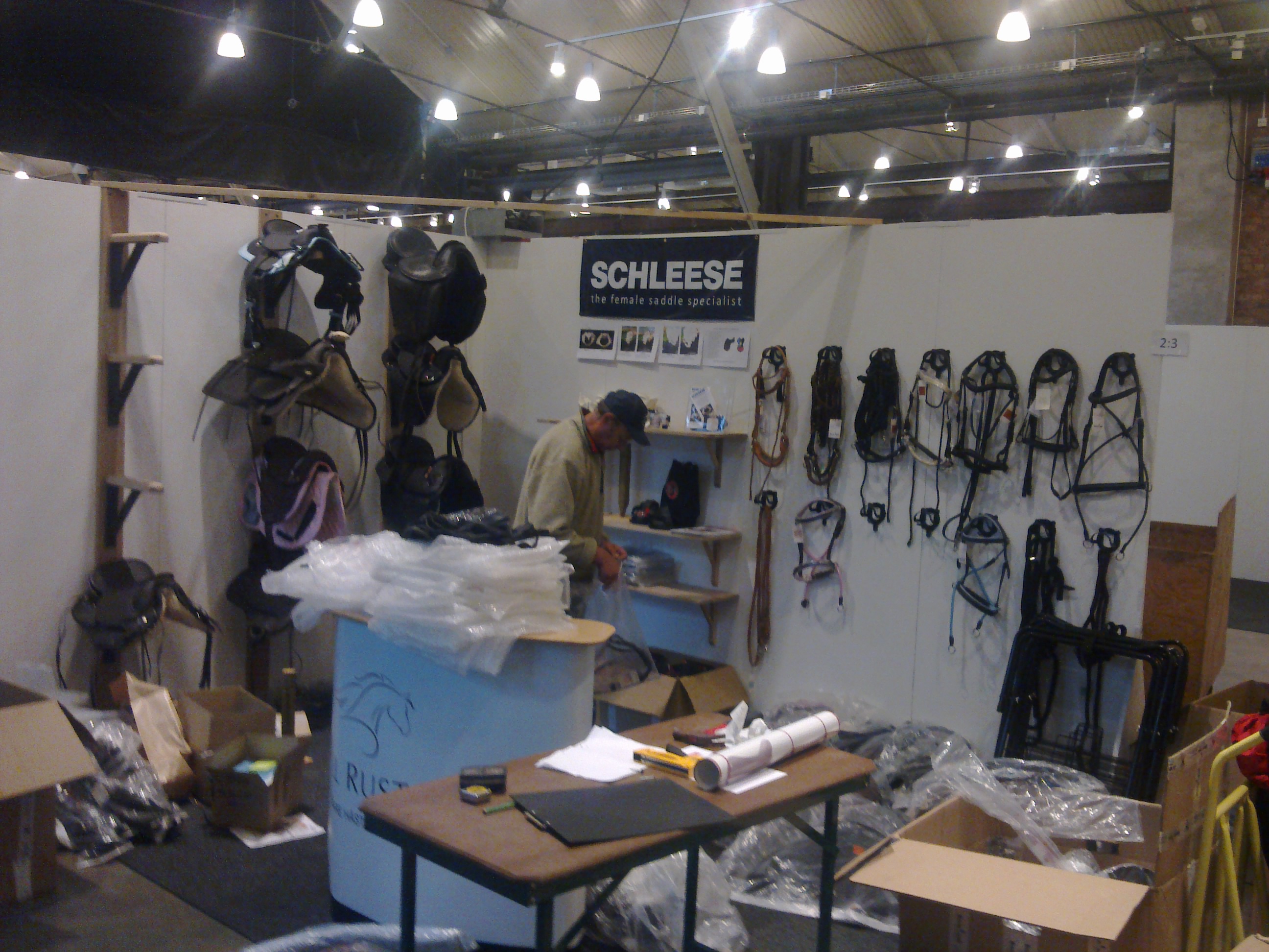 Tyvärr var båda mina barn Anton och Viggo sjuka så jag fick vara hemma med dom medan Johan och Pappa åkte ner på torsdagen för att rigga montern dvs sätta upp hyllor, sadelhängare och packa upp sadlar och träns etc