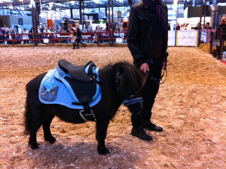 Lördagen började med en modevisning. Vi hade med en shettis, 84 cm hög,  med Bellis sadel, padd och Walnut träns.  Söt som socker, men jag som hela dagarna mässar att sadeln inte få gå förbi sista revbenet 🙂